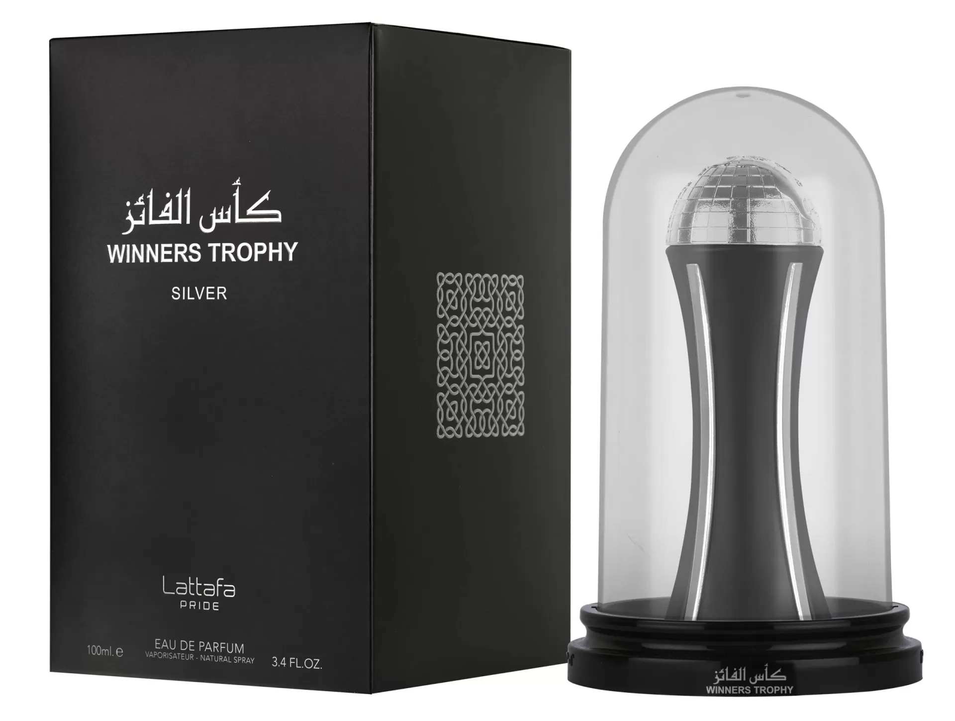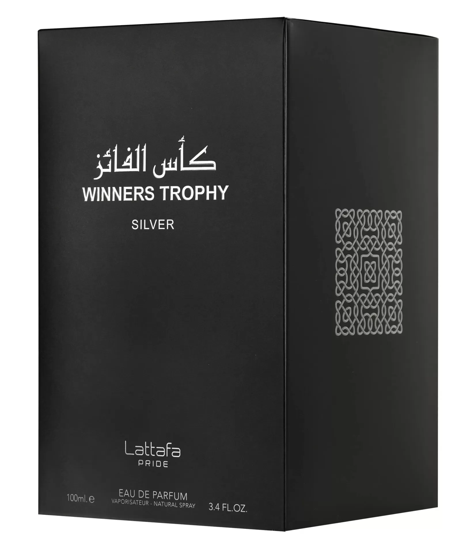 Winners Trophy Silver da Lattafa Perfumes é uma fragrância classificada como amadeirada e aromática, adequada para mulheres e homens (unissexo). É um lançamento relativamente recente no mercado, tendo sido introduzido em 2022. A fragrância abre com notas frescas e cítricas de laranja/mandarina, combinadas com o toque resinoso e ligeiramente picante do olíbano. O coração é suavizado por um acorde clássico e reconfortante de lavanda e baunilha, que confere uma faceta cremosa e subtilmente doce. A base é sólida e masculina (embora perfeitamente partilhável), ancorada na secura e longevidade da madeira de cedro e do vetiver. É uma fragrância versátil, fresca o suficiente para o dia, mas com profundidade suficiente para a noite, com um perfil limpo e elegante.
